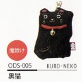 かわいい表情が魅力の招き猫、麻素材のストラップです。