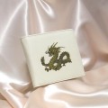 人気の高い白いお財布。中央には、福を運ぶ龍が描かれています。