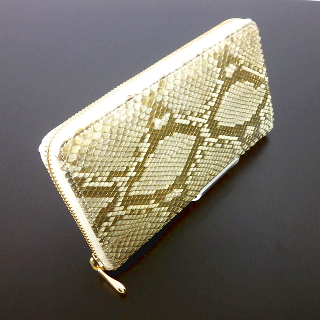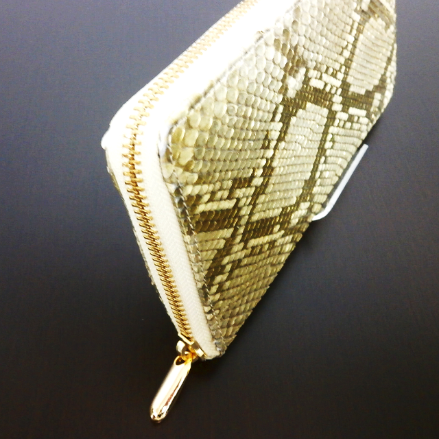 ゴールドに浮かび上がるような蛇独特の美しい模様。外部ポケットはありません。